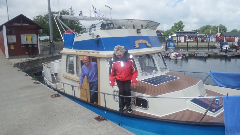 Helmi lämnar båten efter båtlunch hos Titti och Jörgen.