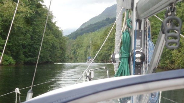Vi gick iväg tidigt idag på morgonen, kl. 05.00 för att det skulle passa med tidvattenströmmarna. Jodå, detta fungerade bra. Vi hade 2,5 – 3 knops medström på förmiddagen, och riktigt rusade fram. Samtidigt blåste det upp kulingvindar mot oss. Kombinationen vind och ström mot varandra är känd för att kunna ge mycket hög och krabb sjö. Nog kände vi av det, men det fick väl gå an. Det skulle väl lugna sig.