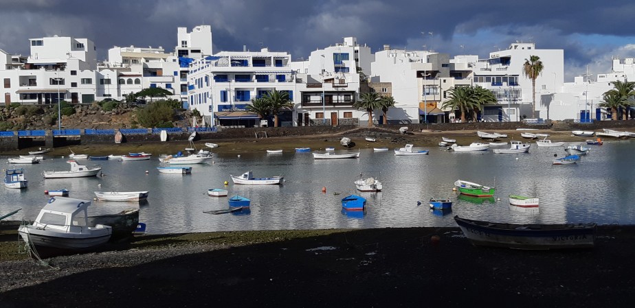 Sååå, nu är vi ordentligt förtöjda i den lilla hamnen på Caleta de Sebo på La Graciosa, och här stannar vi ett bra tag.