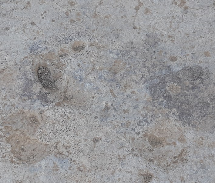 När cement kom att bli tillgängligt för även fiskare och bönder, ljöt man ett stadigt golv på det tidigare väl trampade jordgolvet. På bilden här nedanför ser man avtryck efter en fot! Av storleken att döma troligen ett barn på kanske 6-7 år, som kanske inte kunde låta bli att trampa i den färska cementen. Tala om att göra ”avtryck i historien”!