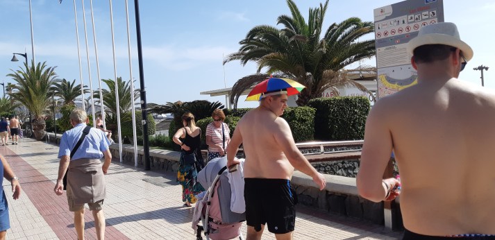Bland alla tokiga upptåg fångade vi också denne turist i sin något personliga huvudbonad.