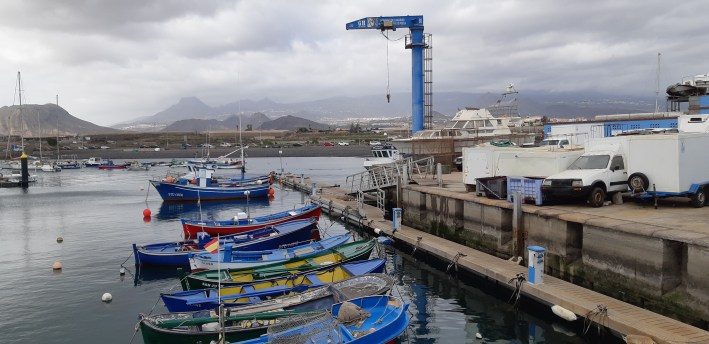 I den lilla Marinan i Las Galletas, där vi f.n. ligger, finns flera små fiskebåtar. Alla målade i härliga färger. Och på kajen tinor och andra fångstredskap.