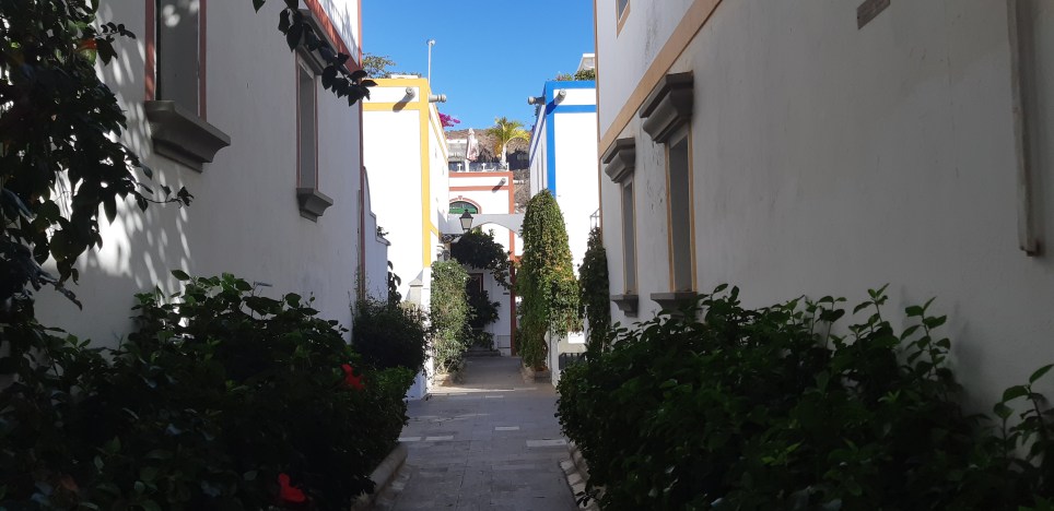 Vi ligger gott förtöjda vid en av bryggorna här i Puerto de Mogán. Det utkristalliserar sig efterhand nya kontakter på bryggorna. Man utbyter erfarenheter och småpratar med båtgrannar. Tempot är väldigt lugnt. Nästan alla har något underhållsarbete att göra på båten. Ofta går vi promenader upp i bergen.