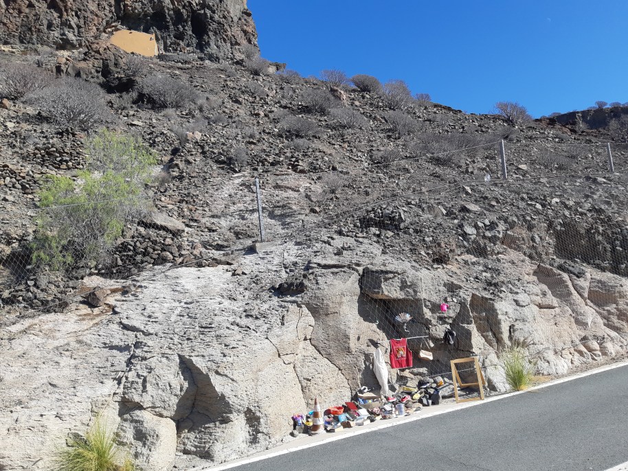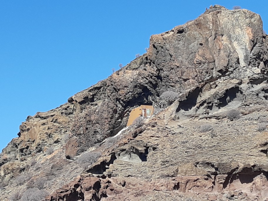Nu är vi tillbaka här i värmen på Kanarieöarna. Vi tog en tur upp längs berget idag. Det finns en gammal grotta uppe i bergssidan, som någon har gjort till sin bostad.