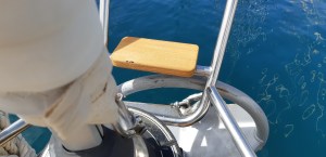 Till underhåll av ett teakdäck hör också att efterhand ersätta de små lock, som täcker alla de flera tusen skruvhålen. Varje år är det 5-10 stycken, som lossnar. Själv brukar jag skruva ur skruven, försiktigt borra upp hålet med ett 10 mm. borr, och applicera ett 2-komponent härdlim i hålet. Och sedan pressa ner en plugg med fibrerna i rätt riktning. Banka försiktigt. När limmet nästa dag har torkat, slår man försiktigt av den överflödiga pluggen. Slippa jämnt med ett fint sandpapper.