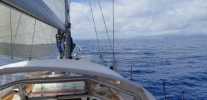 De senaste dagarna har ett djupt och mäktigt lågtryck passerat förbi strax norr om oss och drar nu mot Portugal. Förhoppningsvis minskar vinden och framför allt vågorna under de närmaste dagarna, så att vi kan börja segla tillbaka.